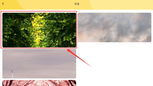 3、在风景图片中,点击红色箭头所指的树林图。