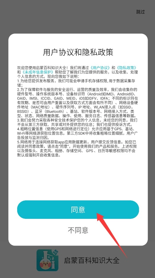 1、打开后,首次使用时需同意用户协议与隐私政策,点击同意即可进入主界面。