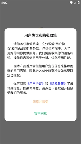 1、仔细阅读并同意用户协议与隐私政策后,点击“接受”按钮,就能开启使用之旅。