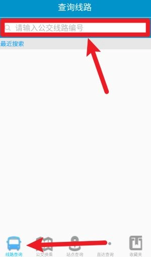 1、点击首页的公交查询图标按钮,即可进入包含线路、换乘、站点、直达等多种服务的公交查询页面。