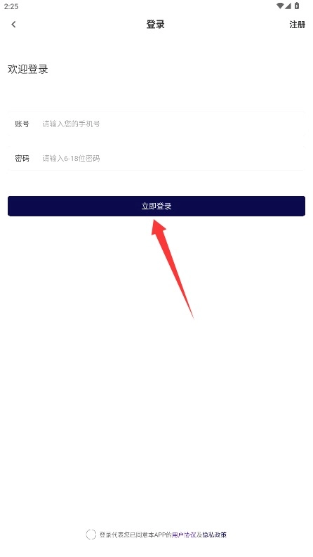 4、已注册用户可在登录页面输入手机号和密码,同意协议后点击登录进入系统。