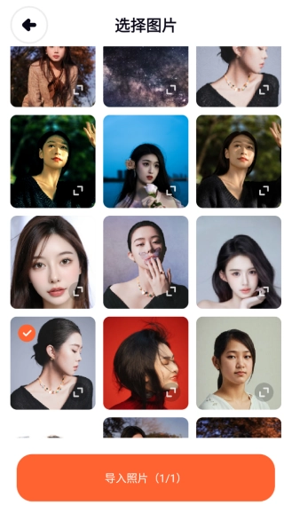 2、挑选要裁剪的图片,勾选好后点击“导入照片”。
