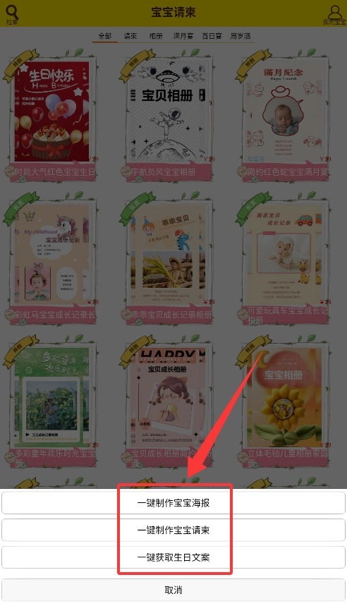 3、在系统给出的各类模板里挑选合适的样式,像成长纪念册或者生日邀请函这类都可以,选好后就能进入编辑页面对内容进行调整。