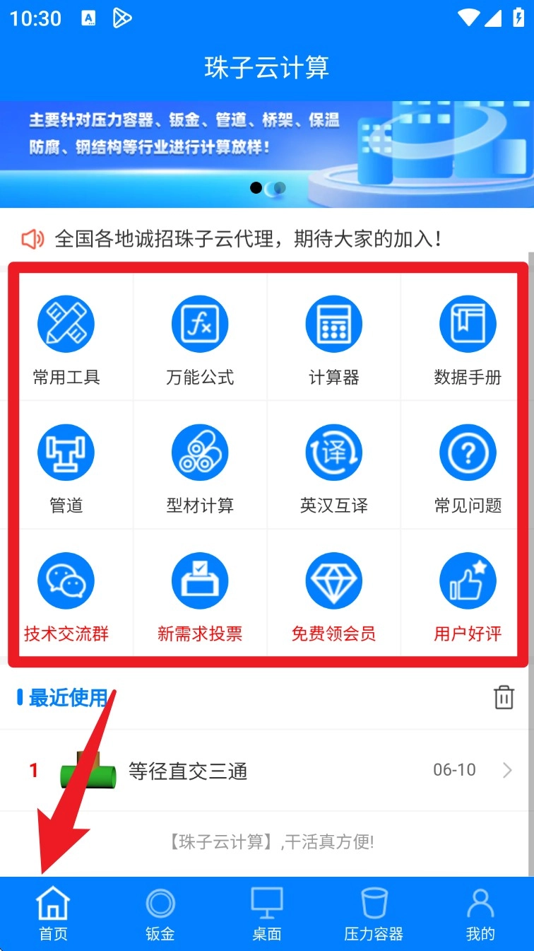 2. 注册成功后进入首页,点击页面中间区域的常用工具图标,即可进入基础几何计算功能界面。