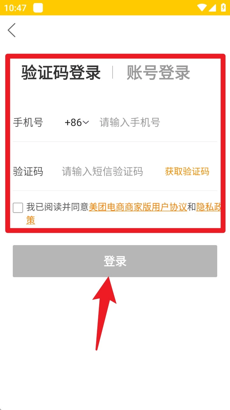 1. 打开App后,选择验证码登录的方式,依次输入手机号和短信验证码,然后点击登录按钮即可。