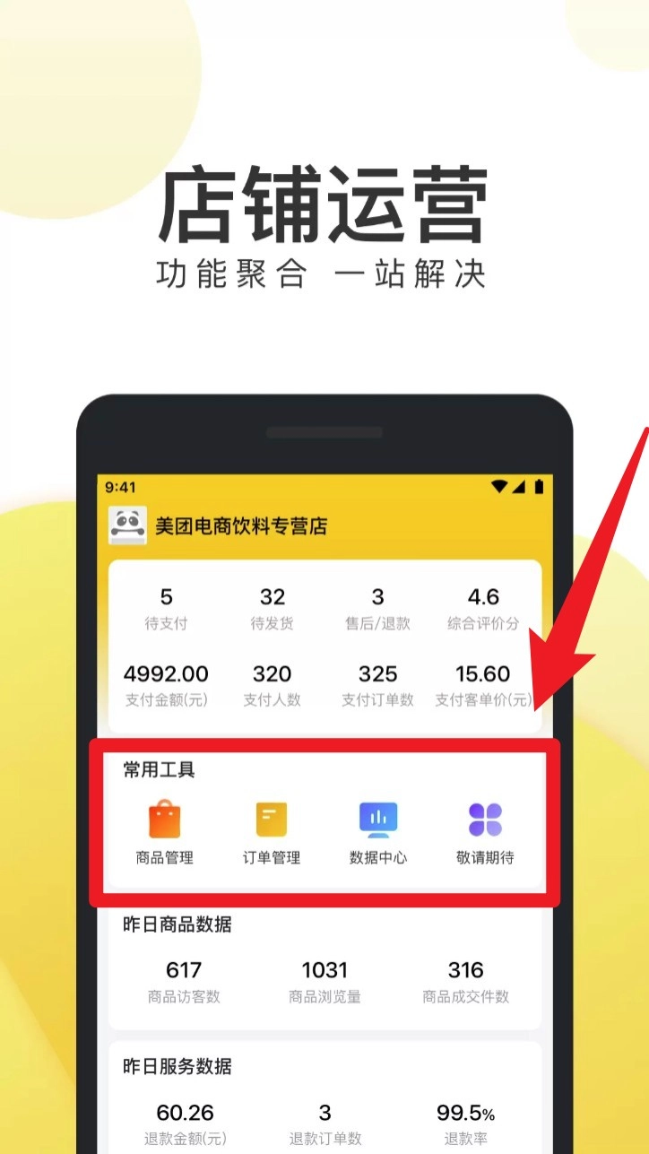 美团电商是一款面向商家的移动端经营管理工具,具备订单管理、商品管理、店铺运营等核心功能板块,让商家能借助手机随时把握门店的运营动态。商家通过手机端就能便捷查看订单进展、实时掌握商品库存情况,并及时处理客户消息;该软件还支持业务通知实时推送和在线快捷回复,能够切实帮助商家优化工作流程,提高日常服务效率与客户响应速度。