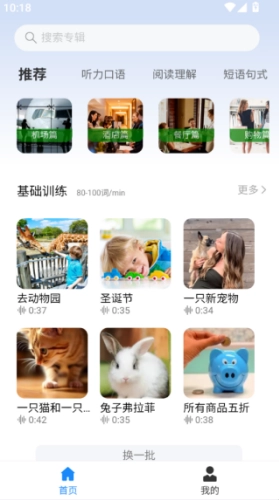 2、进入主界面后,这里整合了推荐内容、听力口语训练、阅读理解练习等核心学习功能,只需点击相应板块就能开启对应的学习环节。