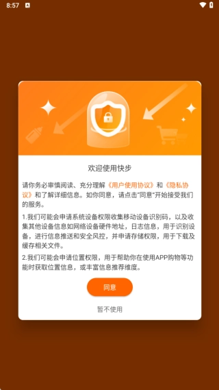 1、安装软件后,新用户需同意软件的用户协议与隐私政策,完成基础授权;