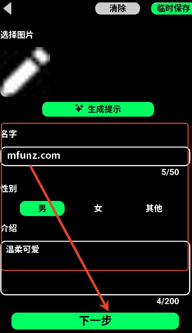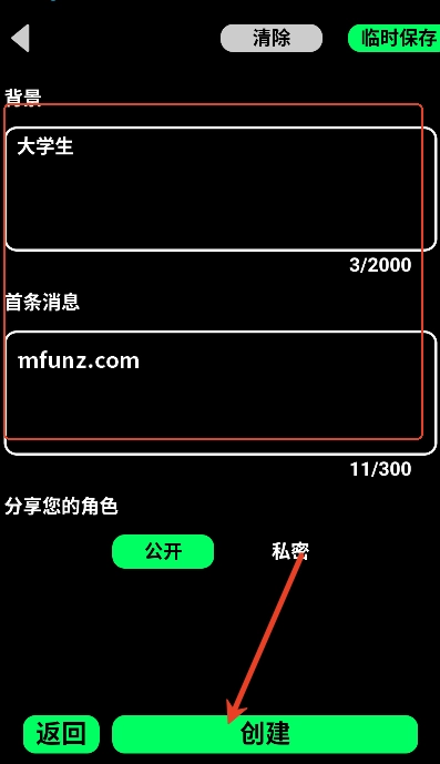 6.最后输入背景和其他信息即可创建角色