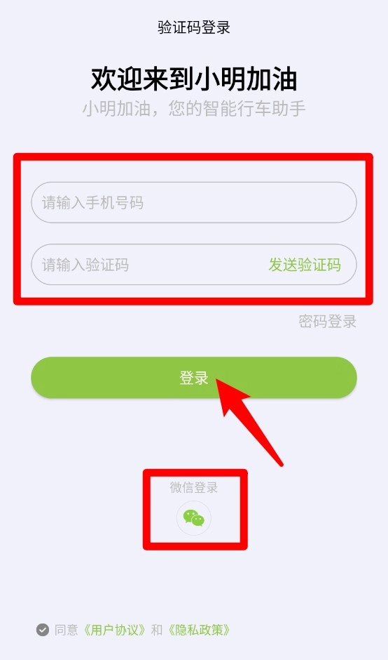 1、登录页面提供手机验证码登录和微信快捷登录两种方式,操作简单快捷,方便用户在驾驶途中随时登录使用。