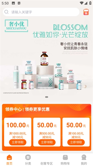 2、在首页显眼的位置能看到领券提示,点击“立即领取”就能获取各类优惠券。