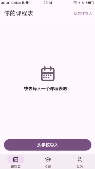 3、课程表功能支持从学校一键导入课表,让你的课程安排清晰明了。