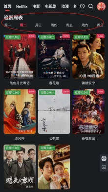 3、向下滑动页面即可查看追剧周表,每天更新的资源都能轻松获取,一个不落。