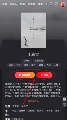 6、进入详情页面查看,点击收藏按钮或立即播放按钮即可完成相应操作。