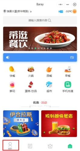 1. 安装Baray外卖应用并打开后,点击界面右下角的【我的】选项,即可进入对应的个人中心页面。