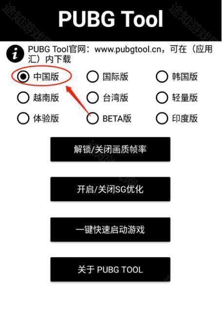 2、进入pubgtool主界面,选择相对于的PUBG版本(中国版所对应的是和平精英)。