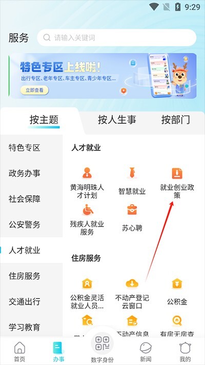 3、可以看到这个界面有个“就业创业政策”