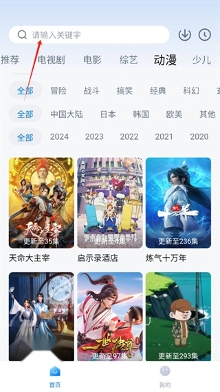 2、接下来,在首页顶部的搜索框中,输入你想要观看的影视作品、动漫、综艺等的名称来进行搜索。