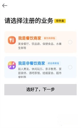1、首先,需要在本站下载并安装美团商家版。打开软件后,新用户要使用手机号完成注册和登录操作。登录成功后,界面会显示两个选项,接下来我们以餐饮商家为例展开说明,要是您属于其他类型的商家,则选择非餐饮商家选项。这两类商家在软件中的功能基本一致。
