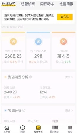 4、美团商家版具备数据总览、经营诊断以及同行动态信息查询等功能,借助这些数据能够辅助您更精准地开展经营决策工作。
