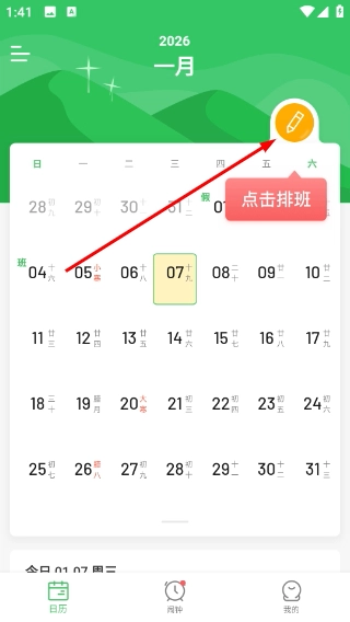 排班日历是一款专门为职场人士设计的智能排班工具,它的目的是帮助用户轻松管理复杂的排班计划。借助简洁直观的界面,用户能够快速录入排班信息,并且实时查看自己的工作日程。不管是固定班次还是轮班制,排班日历都可以精准计算,提醒用户准时上下班,让工作和生活更加有条理。