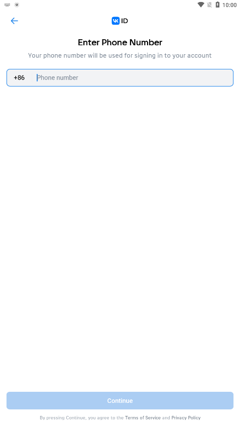 打开VK app,进入登录界面,点击下方“Sign up”选项