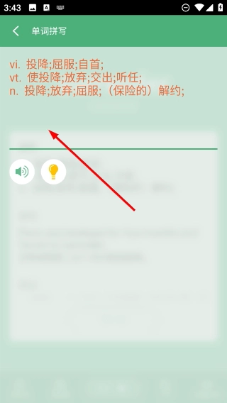 4、点击底部的【听写】按钮,就能进入单词拼写练习界面,借助听读辅助来完成单词拼写训练。