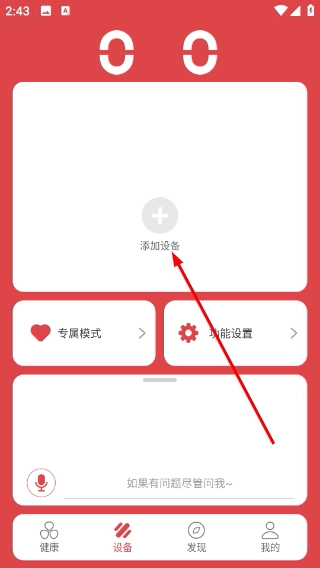 2、进入设备页面后,点击“添加设备”按钮,可进入设备添加引导界面,准备配对新设备。