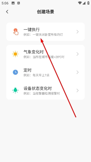 2、进入创建场景页面后,点击“一键执行”选项,即可进入新的一键执行场景配置界面,在此处可对自动化任务进行设置。