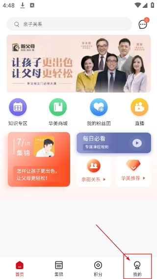 2、打开应用进入首页后,能利用搜索栏搜索内容、进入知识专区等,点击底部导航栏的【我的】选项,即可进入个人中心页面。