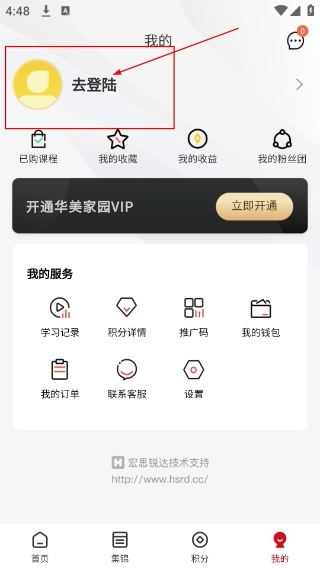 3、进入个人中心页面后,点击【去登录】区域,即可进入账号登录操作界面。