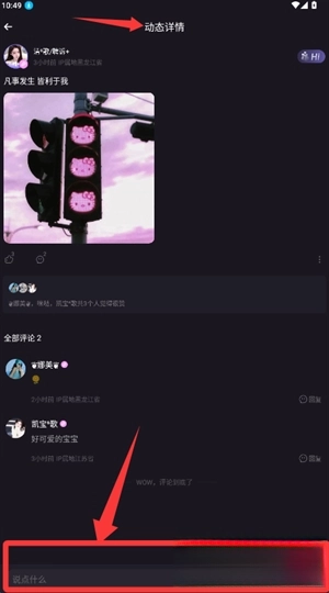 3、在动态详情页底部的输入框中编辑内容,就能发布评论参与互动。