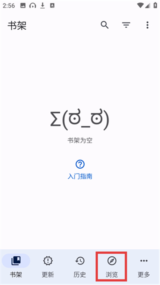 1、当书架页面为空时,点击底部的【浏览】选项,即可进入资源浏览界面,之后就能挑选自己喜欢的内容了。