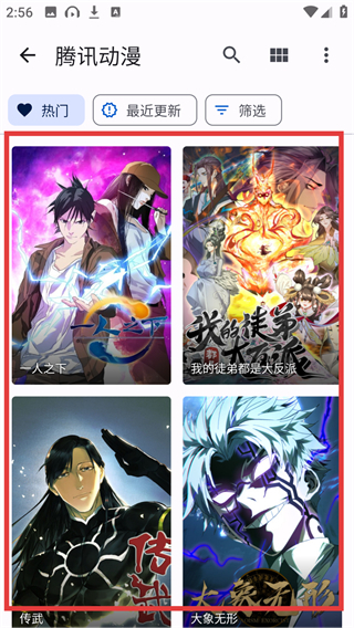 3、进入【腾讯动漫】的资源页面后,会看到《一人之下》这类作品,选择你想找的目标作品,就能进入它的详情页面了。