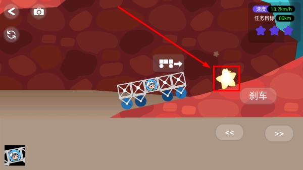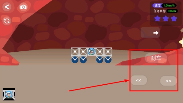 2、进入关卡操作界面后,借助右侧的方向按钮操控载具的移动方向,同时搭配“刹车”按钮来调节速度,从而实现对行驶过程的控制。