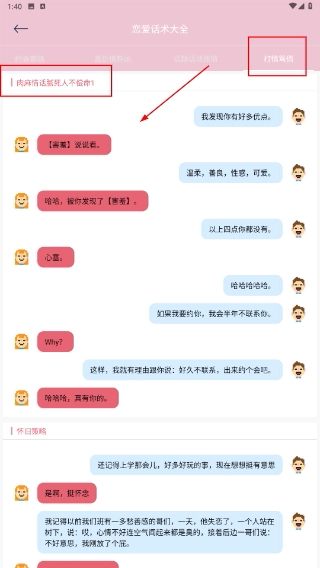 4、在【打情骂俏】聊天话术板块,逐字掌握话术内容,方便后续能即时运用。
