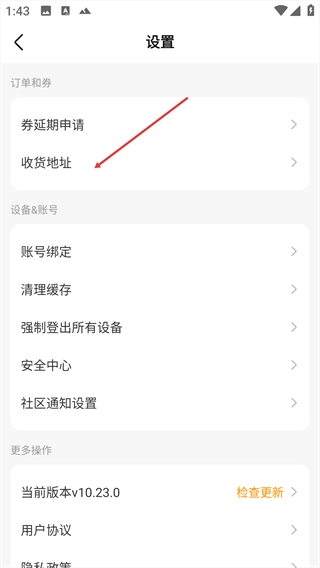 2、进入设置页面后,点击【收货地址】选项。