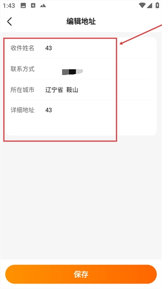 4、修改收件姓名、联系方式等必要信息后,点击底部的【保存】按钮,即可完成地址信息的修改操作。