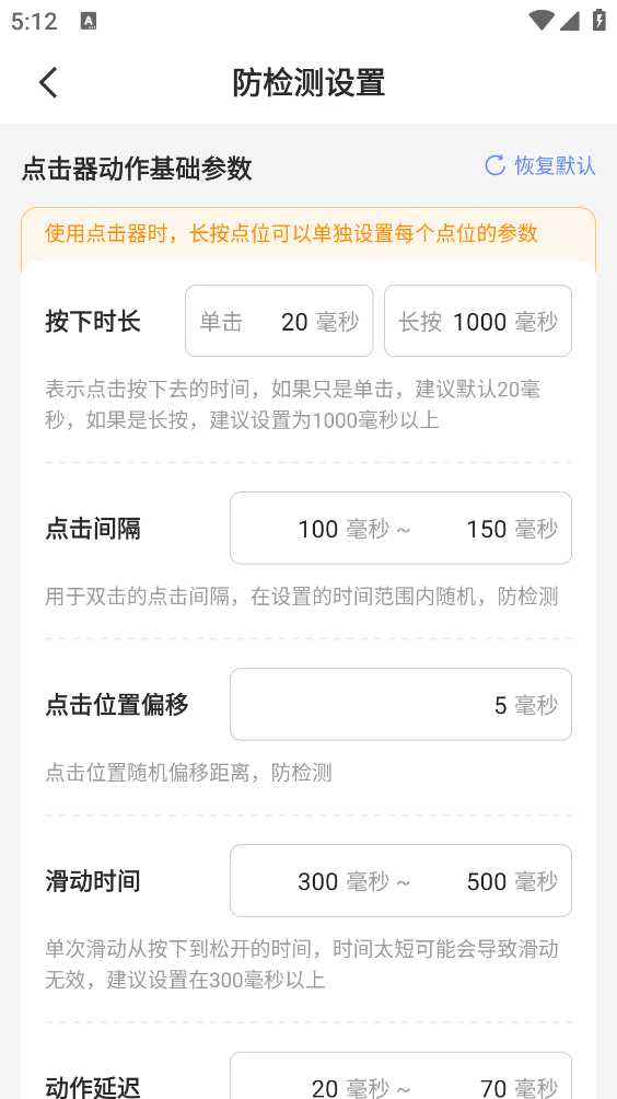 2、可设置点击位置偏差,模拟更自然的触控效果,避免操作死板。