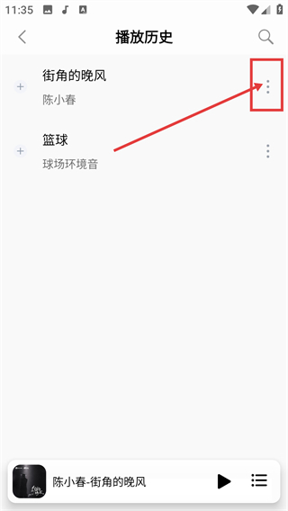 3、在播放历史页面,点击目标歌曲右侧的三点按钮,即可展开操作菜单,执行删除等操作。
