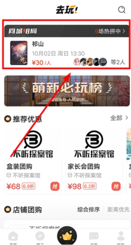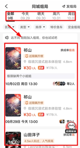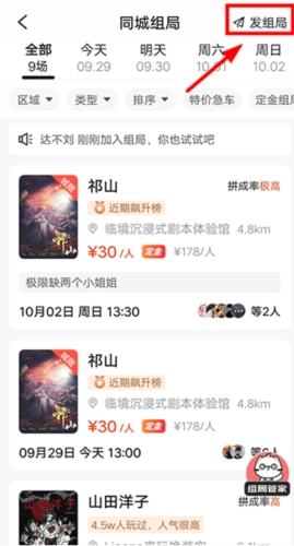 5、如果不愿意组局,也可以选择【同城组局】页面内,参与其他人发起的剧本杀组局。