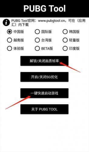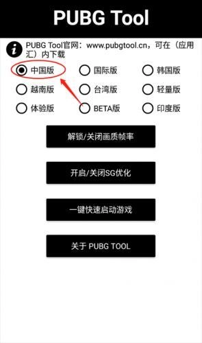 2、进入PUBGTool主界面,选择相对于的PUBG版本(中国版所对应的是和平精英);