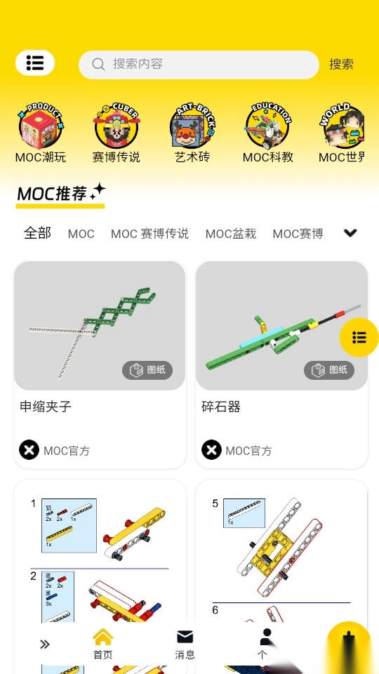 MOC最新版本是一款汇聚海量积木搭建图纸资源的软件,用户可在其中自由发布自己设计的各类积木搭建图纸,并以3D形式全方位展示这些图纸,让大家能更直观地查看每一处细节。同时,软件支持用户随时定制专属的赛博人、MOC音箱盆栽或MOC方仔,还能自定义积木画,轻松打造独家创作的积木作品。此外,它支持通过蓝牙连接积木设备,用户可借助软件随意操控设备进行创作,体验人机互动的创作模式,让积木创作更智能便捷。有需要的用户不妨来MOC体验一番!