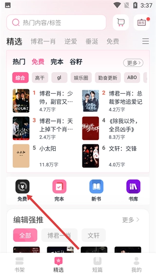 1、打开软件精选页面,点击【免费】图标,就能进入免费作品专区,浏览各类免费内容。