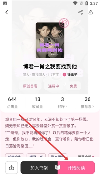 3、在作品详情页,点击【开始阅读】按钮,就能进入作品阅读界面。