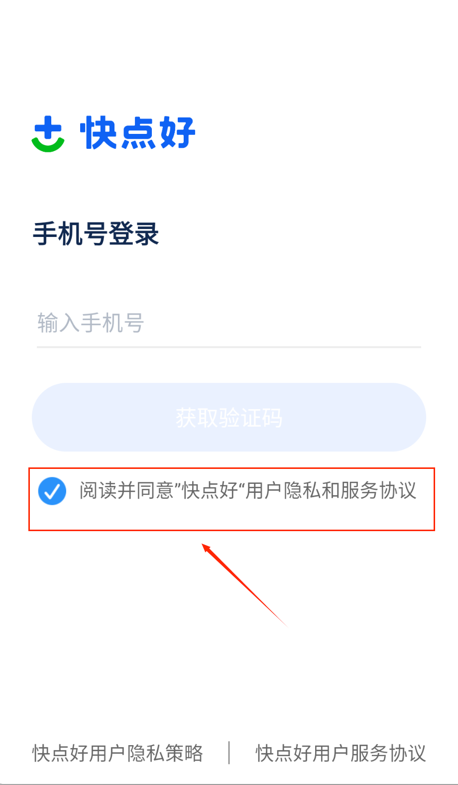 3、登录页输手机号点蓝色验证码按钮,记得勾选底部用户隐私协议小框框,这步跳过没法继续操作呀。