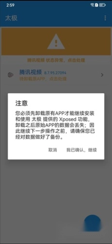 这是太极神器手机版实现机制的一部分。建议先进行数据备份。目前无法同时保留数据并安装。
