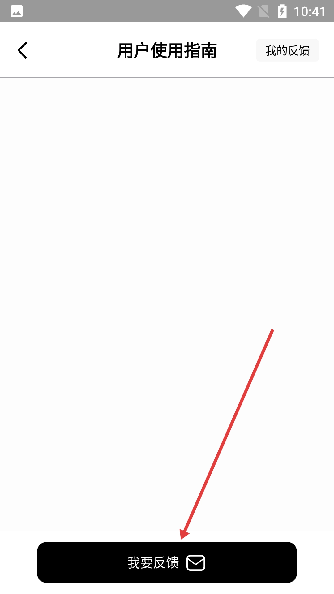 3、在用户使用指南页面找到并点击【我要反馈】按钮,即可进入问题反馈页面。