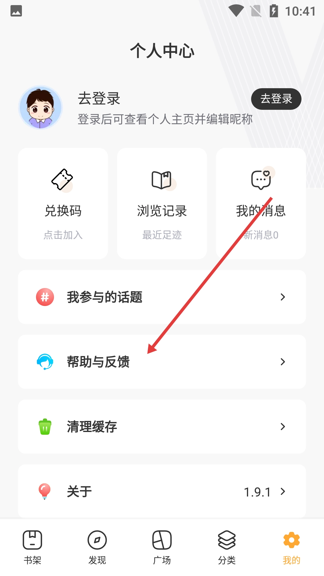 1、点击底部的【我的】选项,进入个人中心页面后,就能看到登录、消息、缓存等功能的入口了。