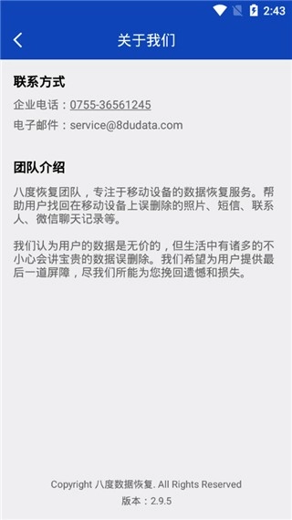 1、支持恢复多种数据丢失场景;不管是误删除、格式化操作、病毒侵袭,还是其他因素导致的数据丢失问题,八度数据恢复都能提供有效的解决方案。